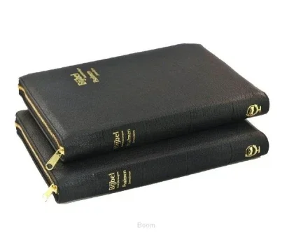 Kanttekeningenbijbel dundrukeditie, 14,6 x 21,5 cm, met landkaarten, met Psalmen en formulieren, leer, goudsnee, met rits, in koker.